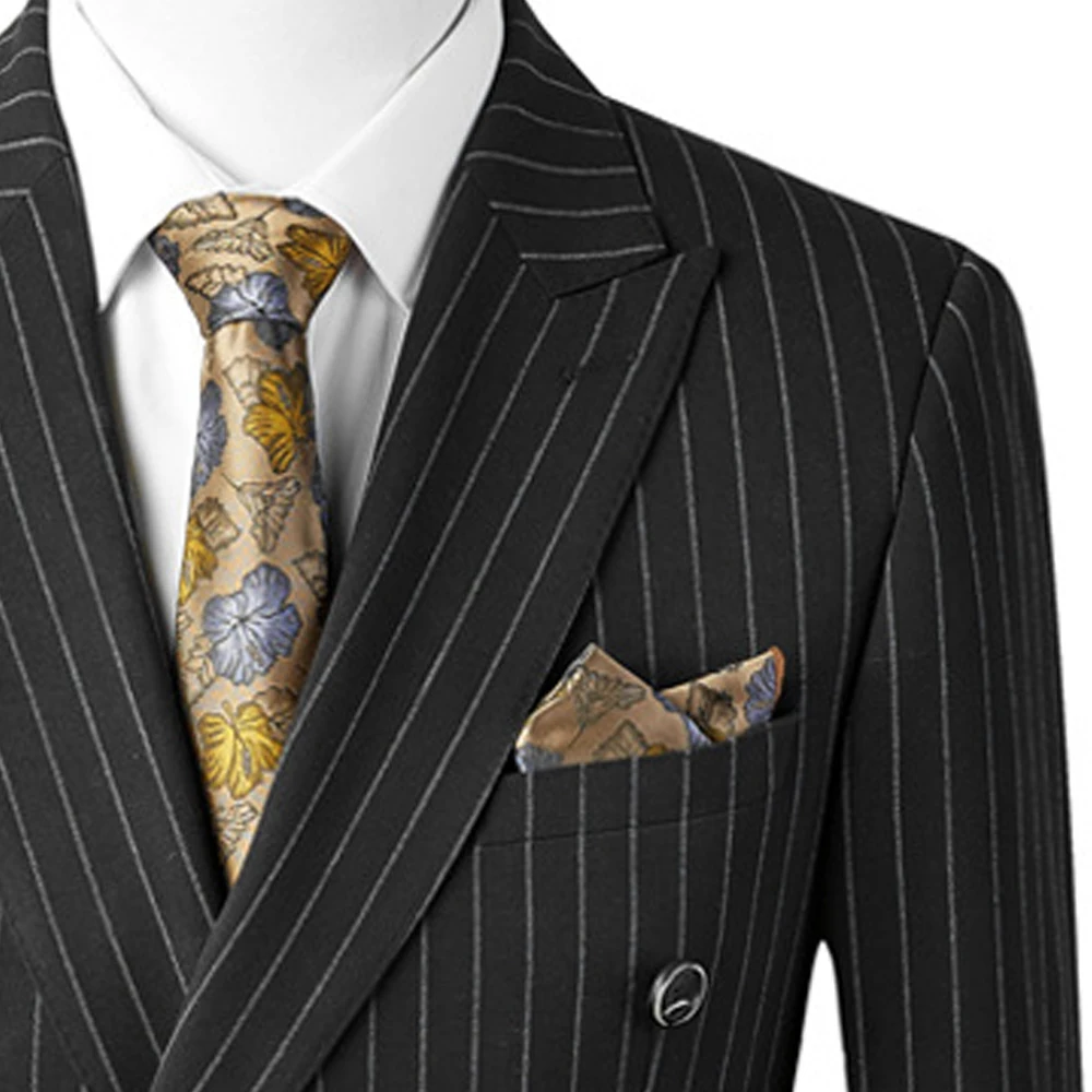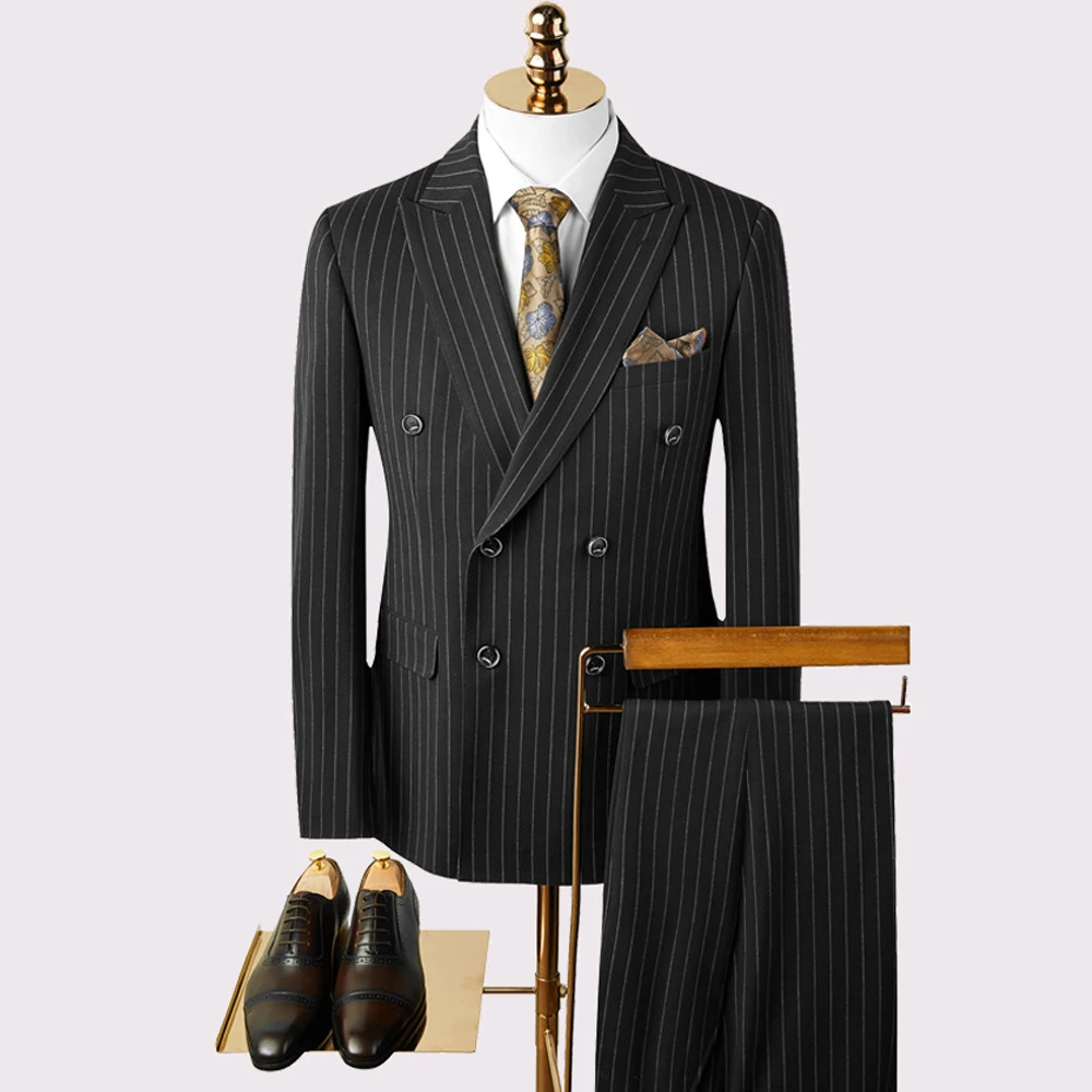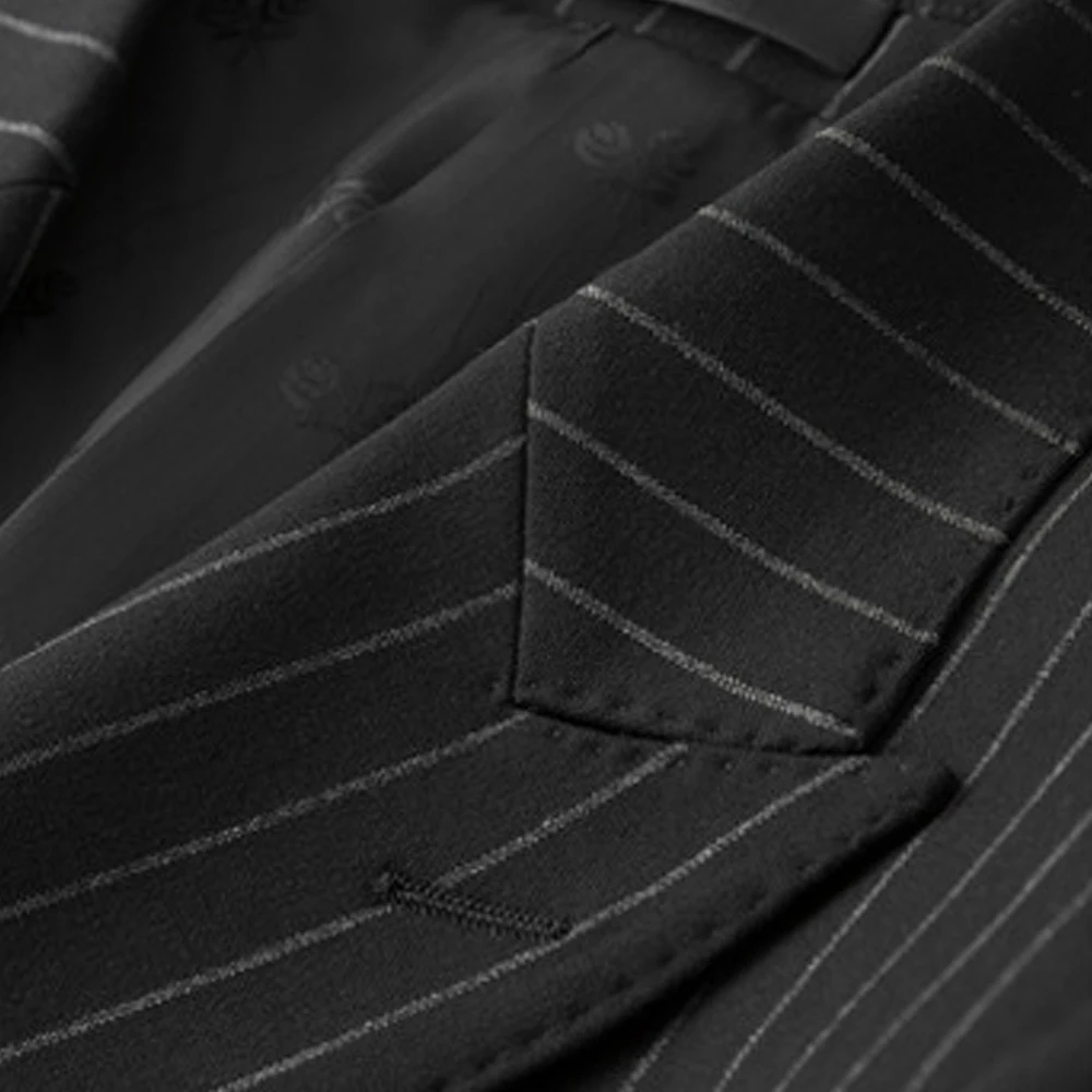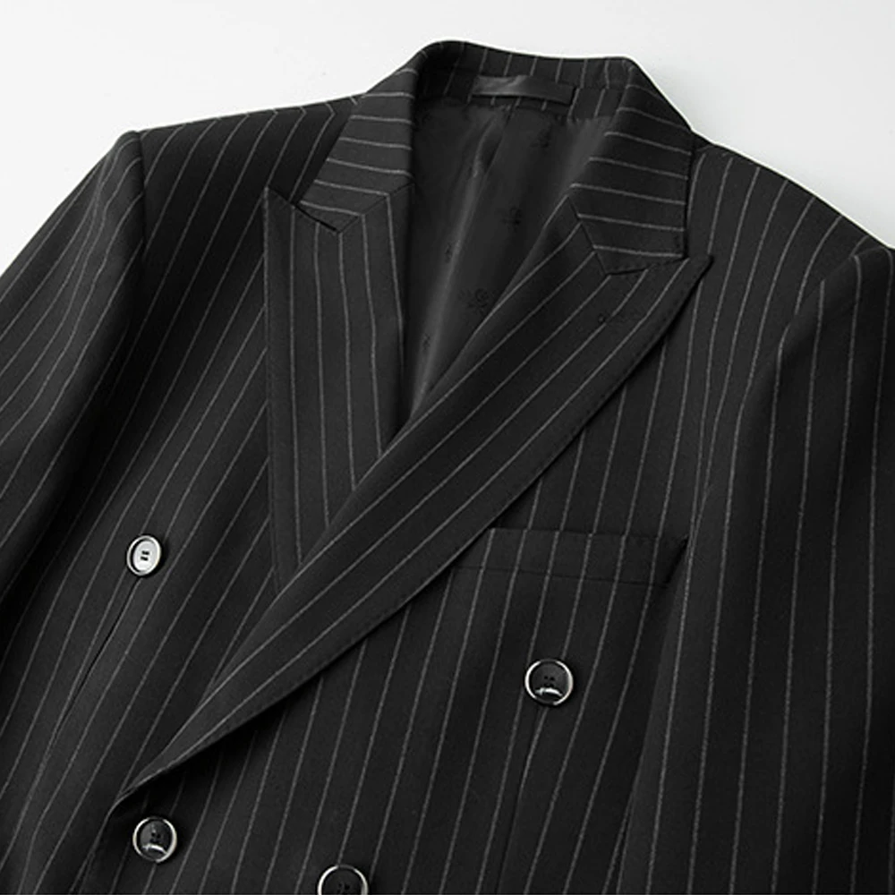 Men's Business Professional Black Striped Two-Piece Wedding Suit Comfortable Bump Collar Best Formal Workwear for Plus Size